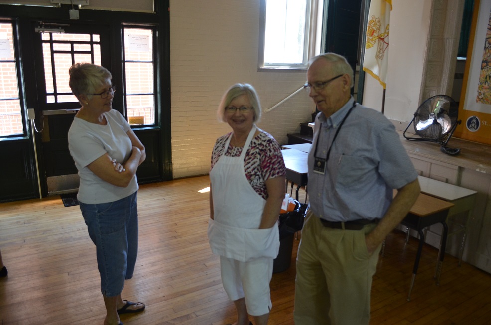 (LtoR) Unidentified lady, Martha Willson, and Br. Bob Willson waiting to clean up.
