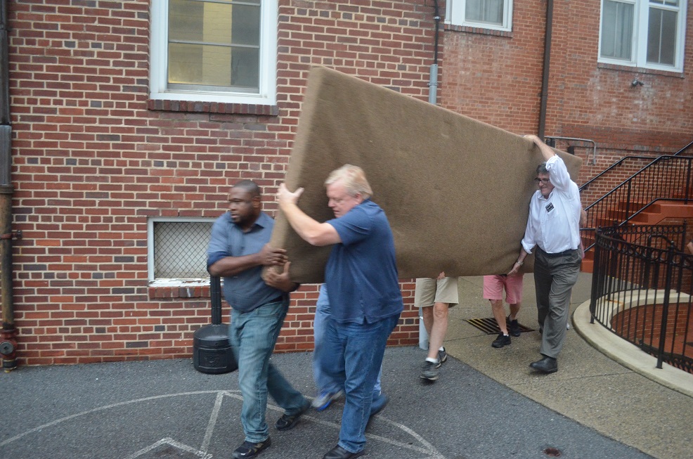 September 6, 2017 - A Church Programs service activity to move the raised Mass sanctuary sections from the parish hall to storage.