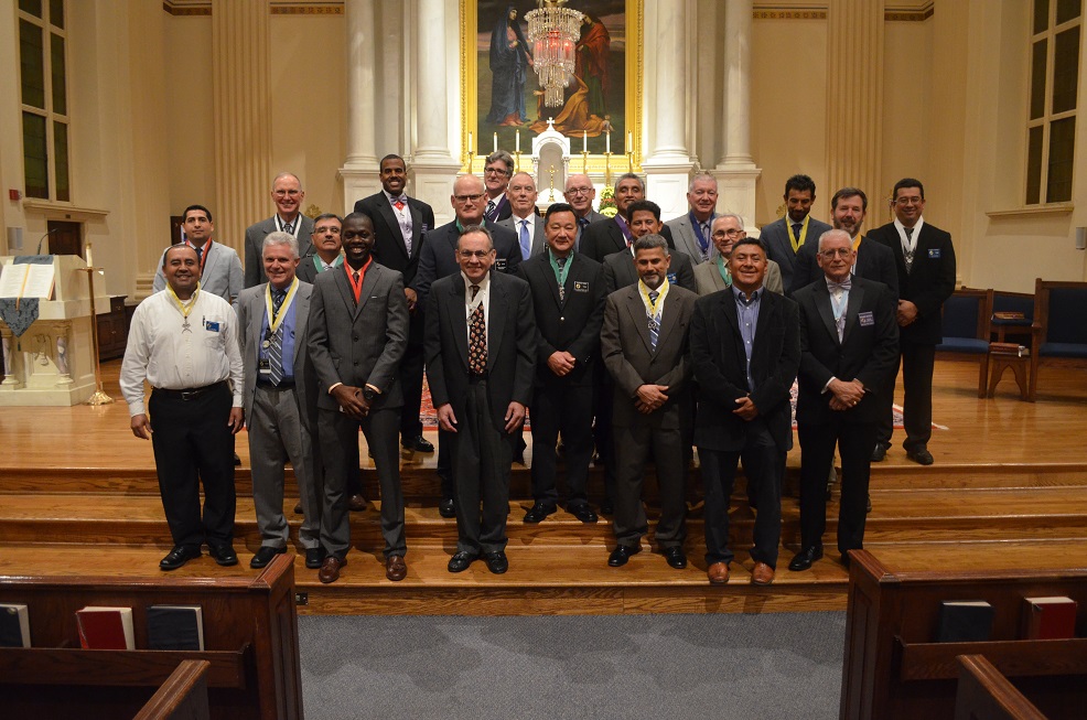 (Third Row, LtoR): Brother (Br.) Michael Vaughn (Chancellor, Cncl 1622), Br. Richard Castillo (District 25 Deputy), Br. John Bargero (Incoming Grand Knight,Cncl 1622), Br. Thomas McMahon (Cncl 1622), Br. Robert Krajewski (Outgoing Past Grand Knight (PGK), Cncl 1622), Br. Raúl Canaviri (Incoming Grand Knight, Cncl 14726), Br. David Vernot (Treasurer, Cncl 1622), Br. Apolonio Barreto (Cncl 14726), Br. Henry Vasquez (Advocate, Cncl 14726).