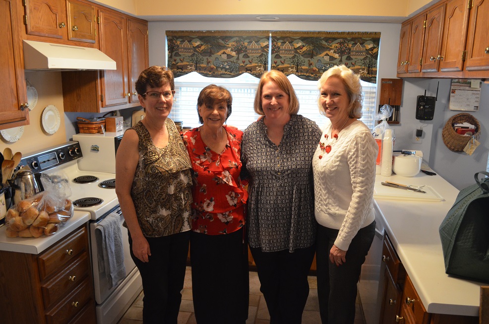 (LtoR) Cindy Satterfield, Ellen Satterfield, Janet Zakrzwski, and Regina Casazza set up for party.