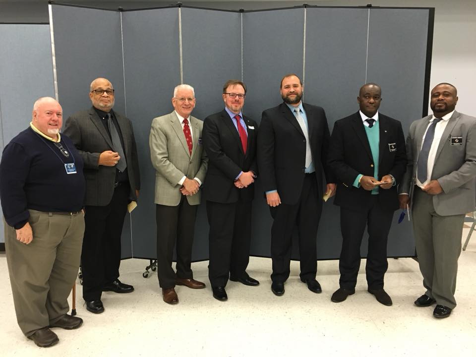 (LtoR) Br. Bill Desmond (Cncl 1622 Membership Director), Br. Clint Biddle (2nd degree member), PGK Rick Casazza (District 25 Warden), Br. Chris Clements (2nd degree member), Br. Joe Foehrkolb (2nd degree member), Br. John Kouame (2nd degree member), and Br. Leonardo Onemiye (2nd degree member).