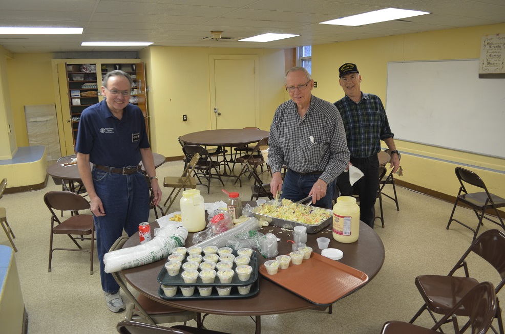 Preparing cole slaw (LtoR): Br. Matt Meadows, Br. Bob Willson, and Br. Tom McMahon.