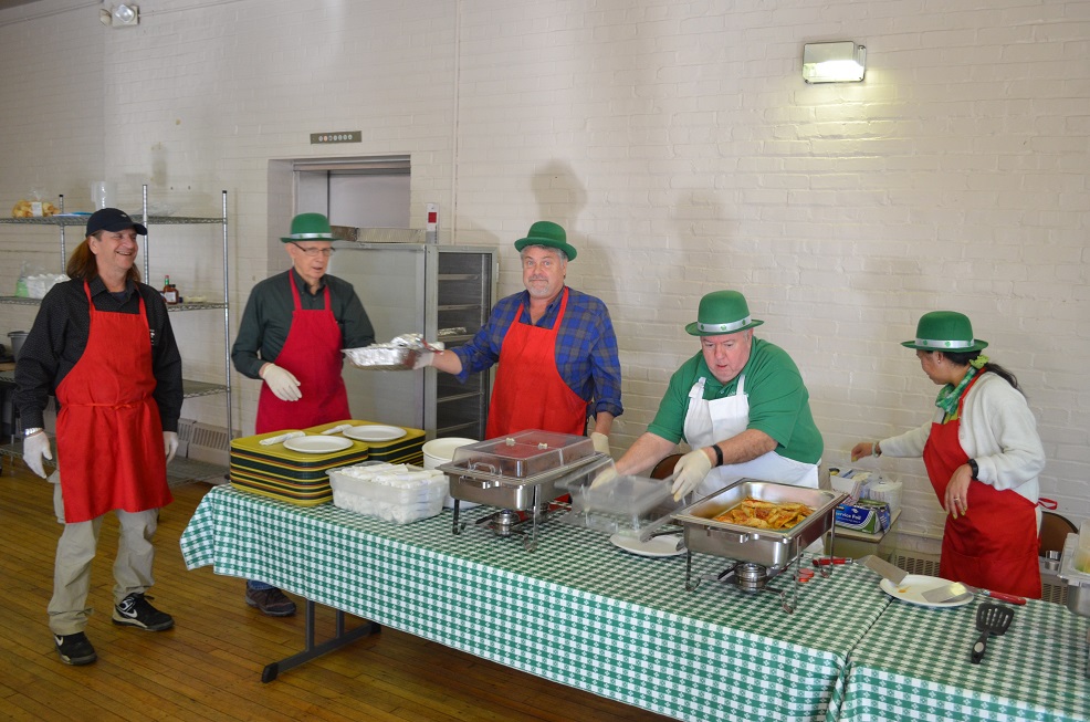 At the serving line (LtoR): Br. Jim Sier, Br. Bob Willson, PGK Tom Plunkett, Br. Bill Desmond, and Karlene Wong.