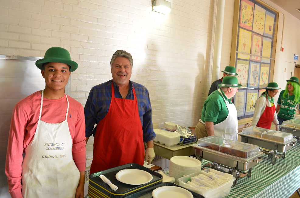 At the serving line (LtoR): a youth volunteer, PGK Tom Plunkett, Br. Bill Desmond, Br. Bob Willson (behind Bill), Karlene Wong, and Janice Plunkett.