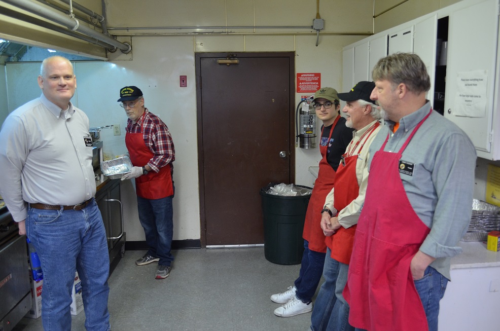 In the kitchen (LtoR): PGK Dave Zakrzwski, Br. Tom McMahon, son of Bob, Br. Bob McDonnell, Br. Jimbo Cooper.