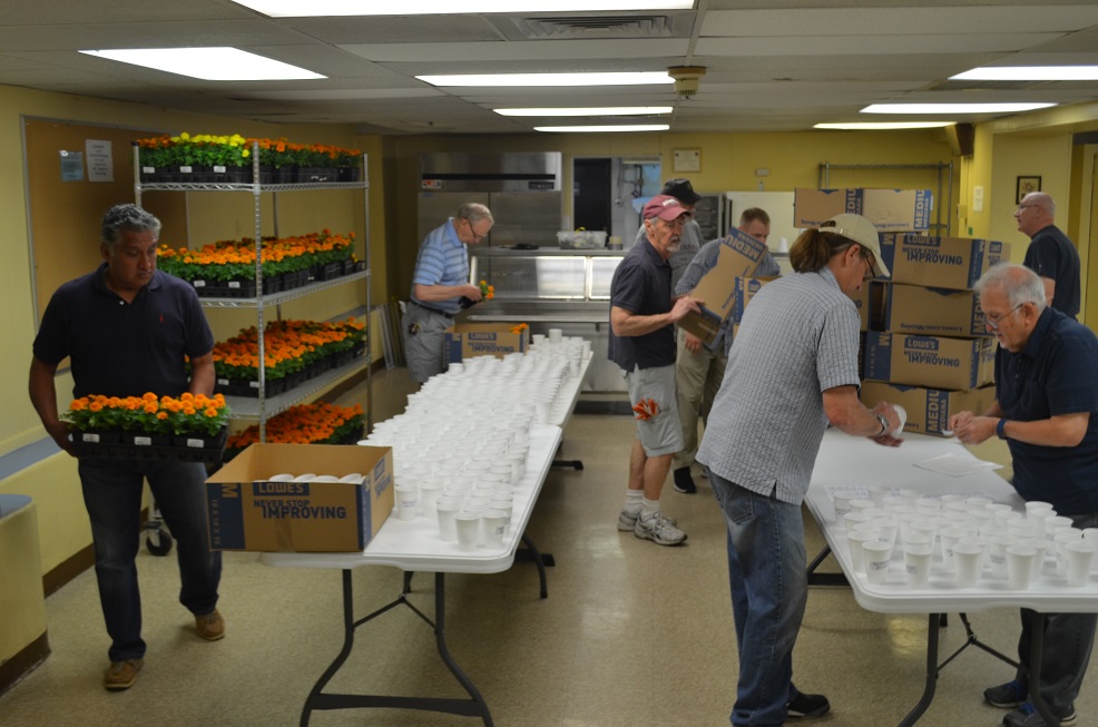 May 12, 2018 - Potting Marigolds for Mother's Day Mary-gold program, giving mairgolds to mothers after Mass.