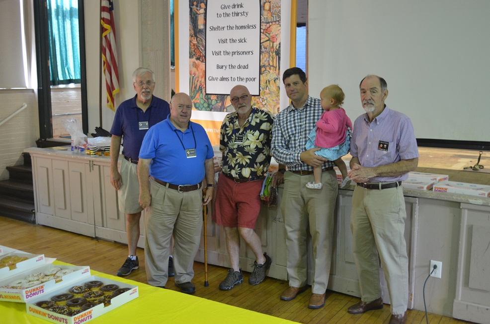 (LtoR) Br. Bob Boehman, Br. Bill Desmond, Br. Tom Rogers, Br. Rick Babbitt and daughter, and Br. John Satterfield.