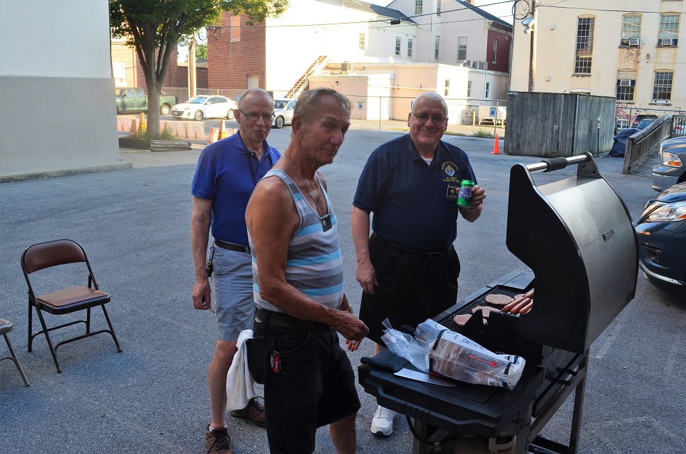 (LtoR) Br. Bob Willson in rear, Br. Pete Tokar manning the grill and Deacon SK Doug Nathan.