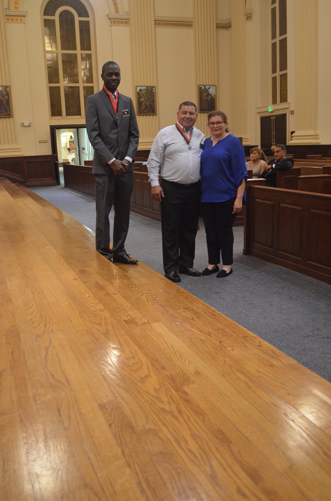 Incoming Warden Br. Sheku Cawray (1622) on left. Incoming Lecturer Br. Manuel Aleman (14726) with his wife to the right.
