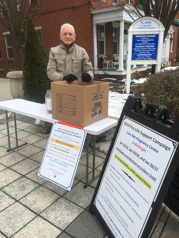 January 20, 2019 - Pro-life Baby Bottle Campaign for Birth Right of Frederick and Care Net of Frederick, collection of donations after Mass.