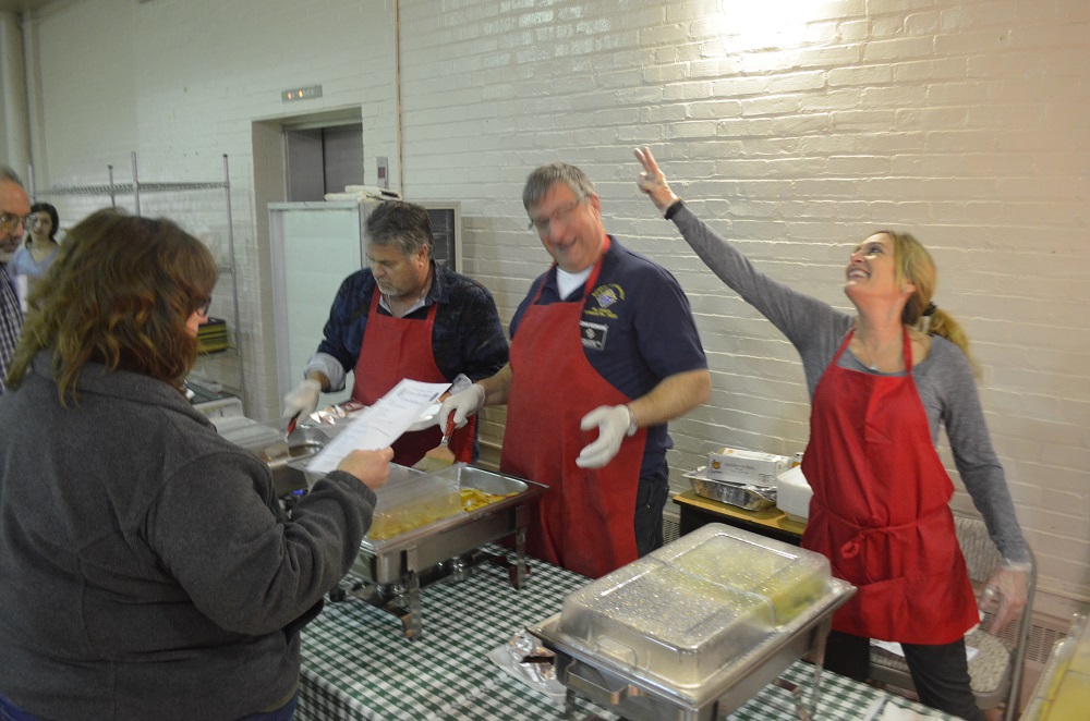 (LtoR) On the serving line; PGK Tom Plunkett, Br. John Widmann, and Janice Plunkett.