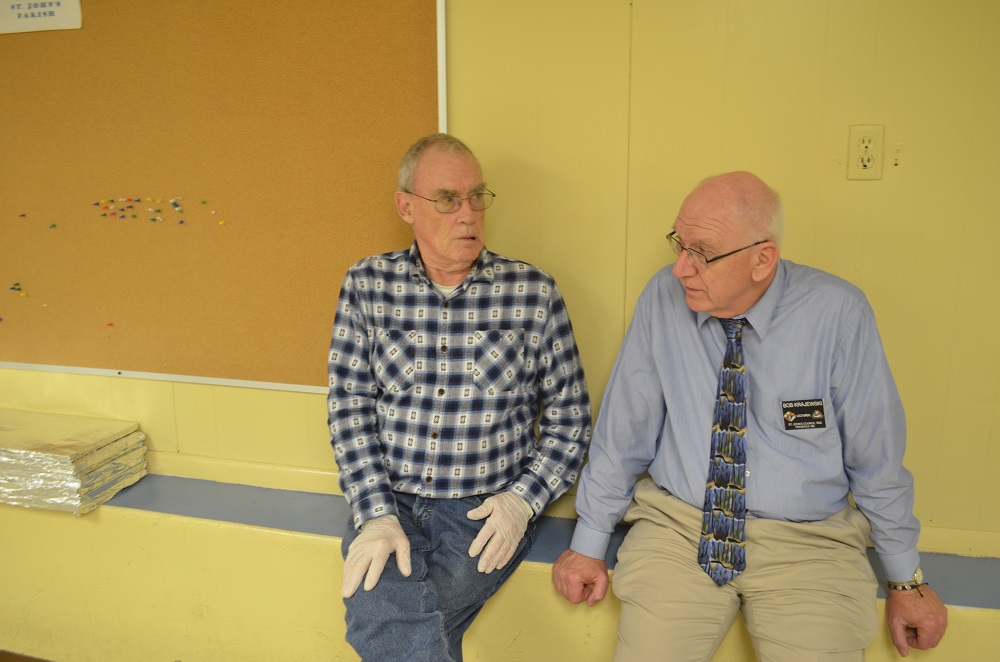 (LtoR) Br. Tom McMahon and PGK Bob Krajewski chat in the cafeteria.