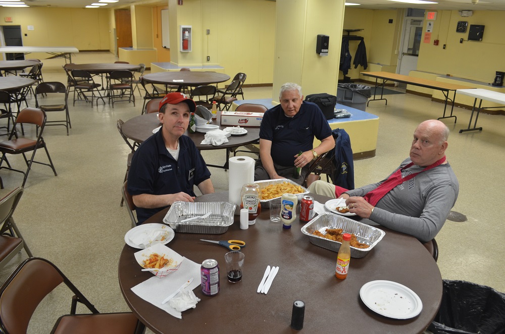 (LtoR) Br. Robert Schneck, Br. Joe Rigutto and Br. Mike Collins eating before the fish fry.