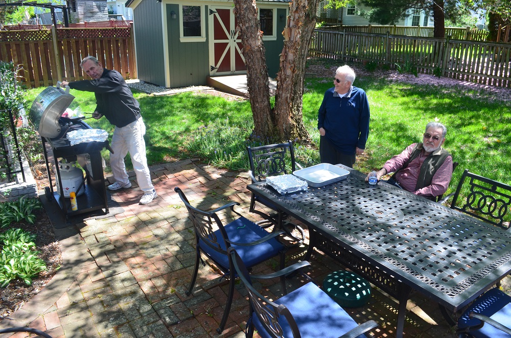 (LtoR) Br. Pete Tokar cooks on the grill. Br. Woody Johnston and Br. Jim Schneck.