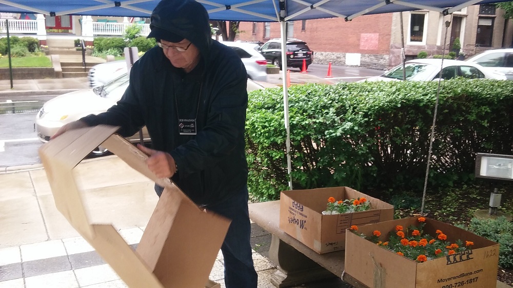 PGK Bob Krajewski sets up marigolds for the next Mass.