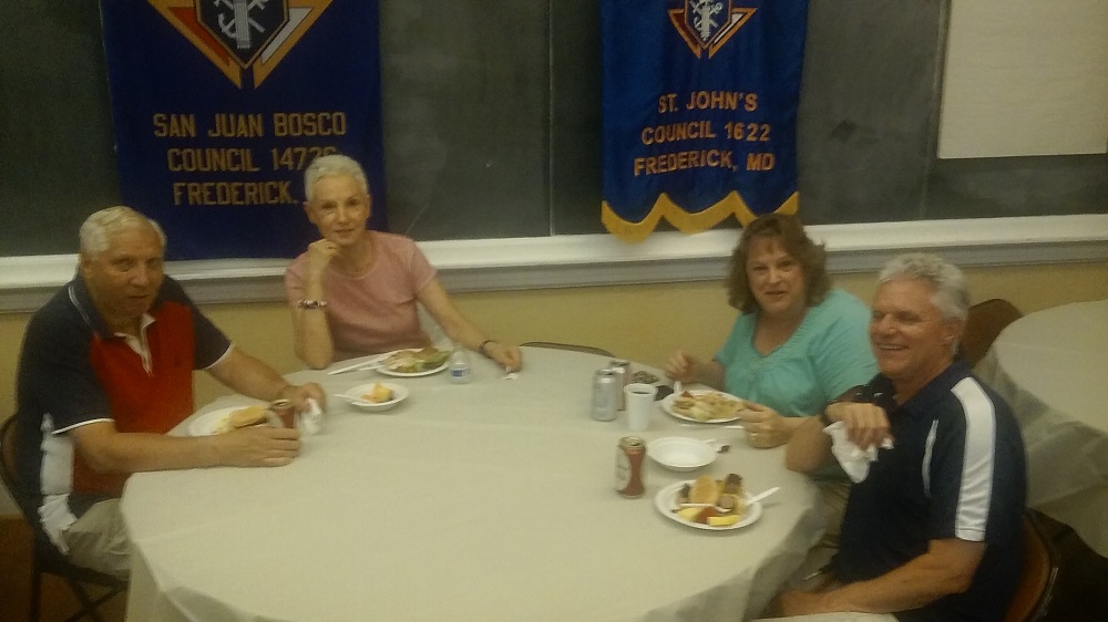 July 2, 2019 - Council wives/family cook out. Moved indoors due to rain, in our Room 10 Council Chamber, Sr. Margaret Bauer Evangelization Center, St. John the Evangelis Catholic Church, Frederick, MD.