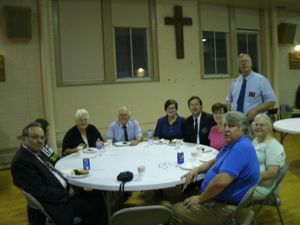 (LtoR) Br. Matt Meadows, an unidentified person, Jacqueline Johnston, Br. Woody Johnston, Meredith Ericksen, Br. Lee Ericksen, Cindy Satterfield, PGK Dave Satterfield (standing), Lisa Cutchin, Br. Bill Cutchin.