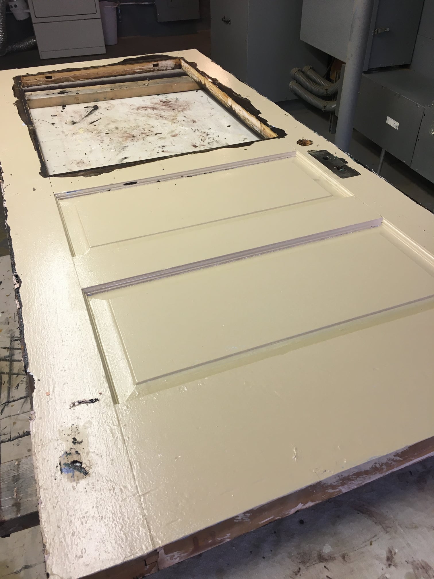 October 10, 2020 - Past Grand Knight Rick Casazza has been volunteering his time for months to strip and refinish the interior doors, one door at a time, in the Sister Maragaret Bauer Evangelization Center, the former St. John's Regional School, at St. John the Evangelist Catholic Church, Frederick, MD.