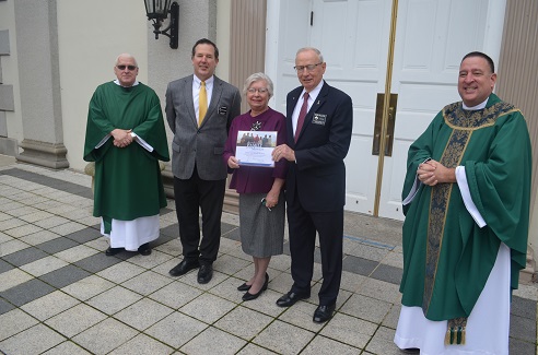 (LtoR) Assistant to the Chaplain Deacon Doug Nathan, Grand Knight Lee Ericksen, Martha and Bob Willson, and Pastor Rev. Kevin Farmer.