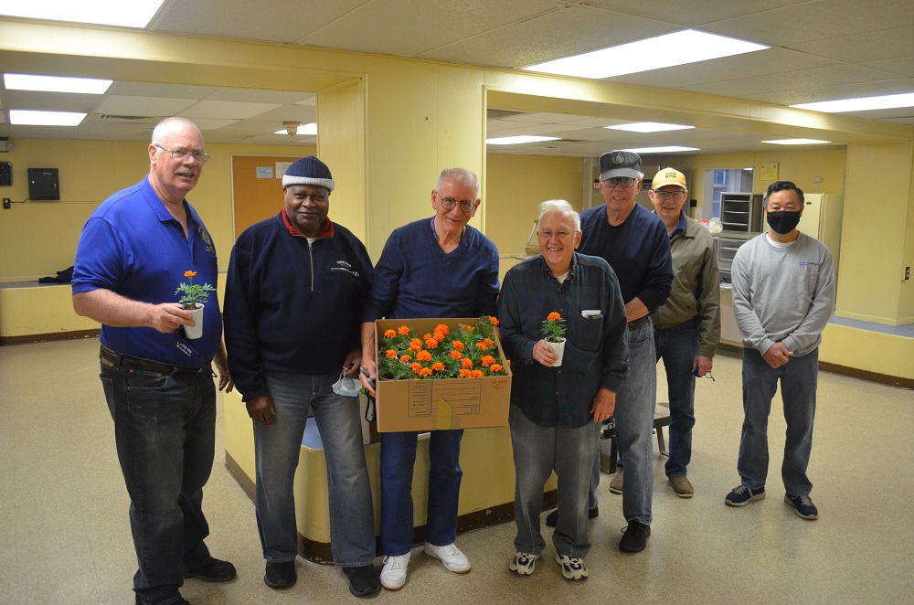 May 08, 2021, Knights potting marigolds in the cafeteria of the Sr. Margaret Bauer Evangelization Center, St. John the Evangelist Catholic Church, Frederick MD. Marigolds will be given to mothers after Mass on Mother's Day as a Mary-Gold pro-life thank you.