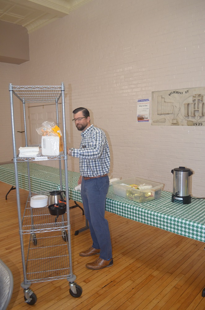Deputy Grand Knight Rick Babbitt setting up in the hall.