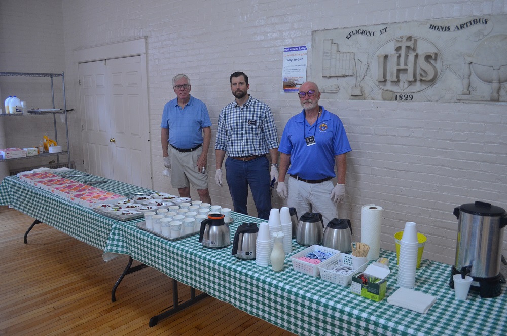 (LtoR) Serving team: Br. Bob Boehman, Deputy Grand Knight Rick Babbitt,and Br. Tom Rogers.