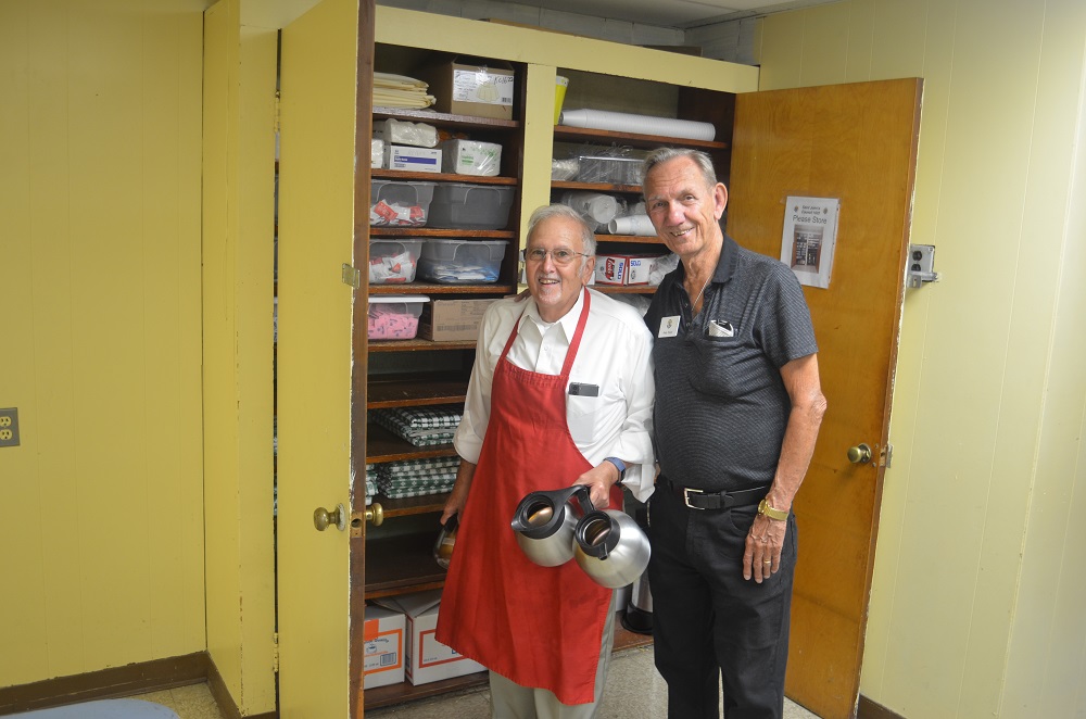 (LtoR) Br. Woody Johnston and Br. Pete Tokar in the cafeteria getting supplies.