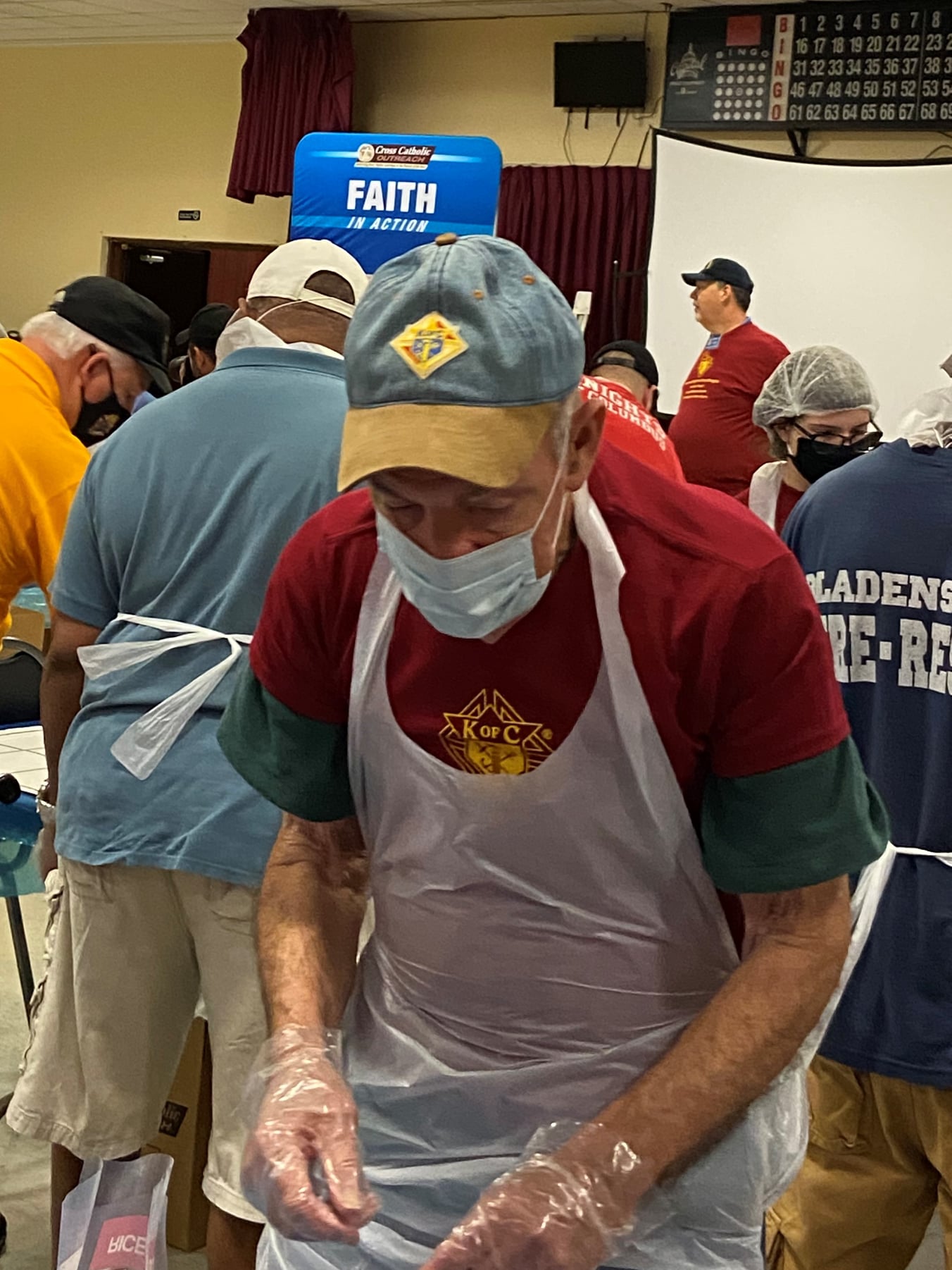July 31, 2021, Some council members and one wife drove to the East side of DC early this morning to suit up and participate in the 2nd Maryland State Council Food Packing Event. Volunteers packed 40,000 meals for shipment to Catholic missionaries in Guatemala. Great work Team 1622.