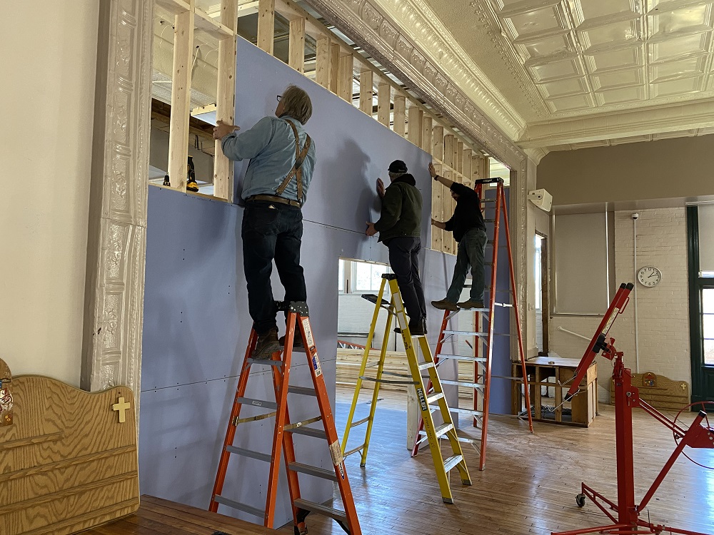 July and August 2021, Parish staff, parishioners, and Knights renovate the hall in the Sister Margaret Bauer Evangelization Center of St. John the Evangelist Catholic Church, Frederick, MD.