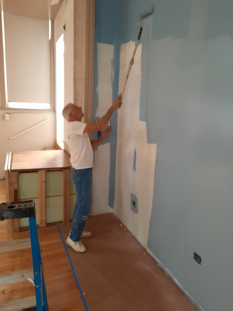August 03, 2021, PGK Rick Casazza painting new wall in the hall of the Sister Margaret Bauer Evangelization Center at St. John the Evangelist Church, Frederick, MD.