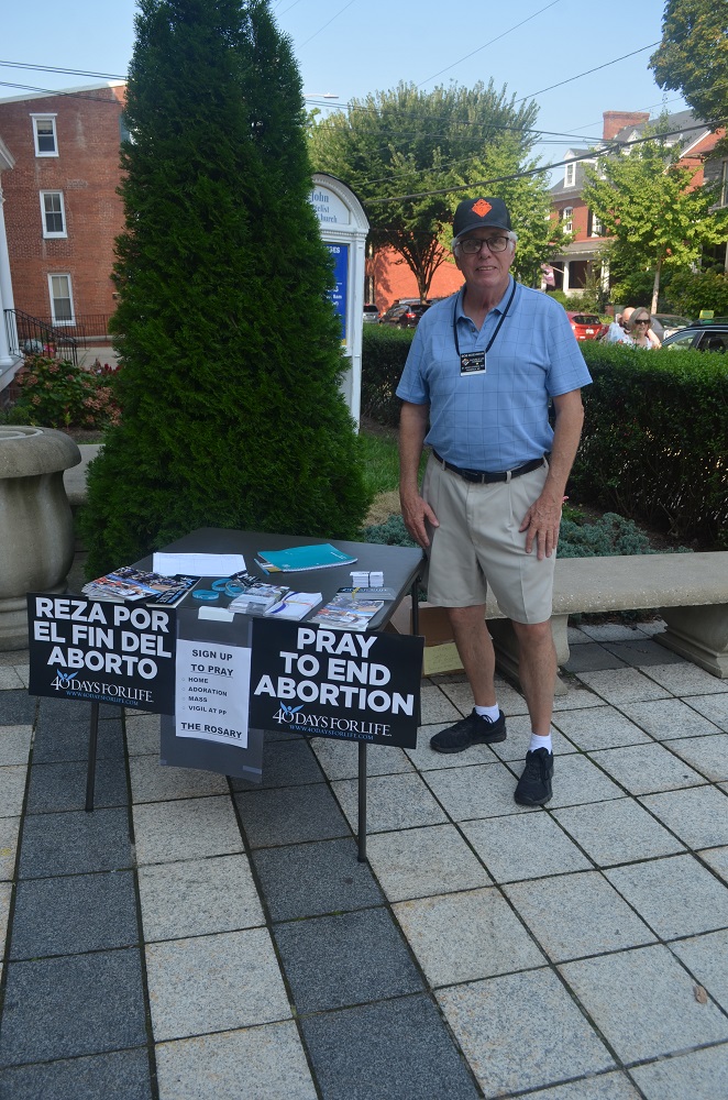 September 12, 2021, Br. Bob Boehman mans a table after Masses at St. John the Evangelist Church, Frederick, MD, to sign up volunteers for the upcoming 40-Days-for-Life pro-life campaign.