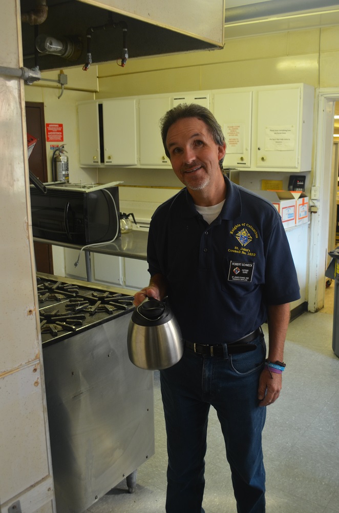 After the 9 am Mass, Br. Robert Schneck makes and brings a fresh pot of coffee up from the kitchen.