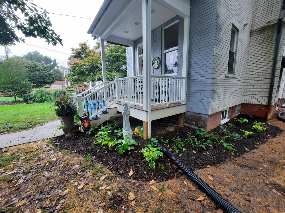 October 9, 2021, Knights, a Knight's spouse, Boy Scouts, and Scouters teamed up today to finished the mulch work at St. John the Evangelist Church and rectory. Another great effort.