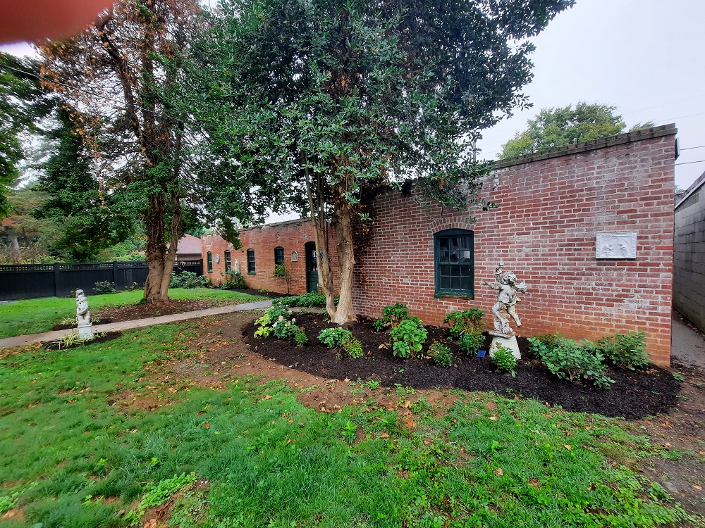 October 9, 2021, Knights, a Knight's spouse, Boy Scouts, and Scouters teamed up today to finished the mulch work at St. John the Evangelist Church and rectory. Another great effort.
