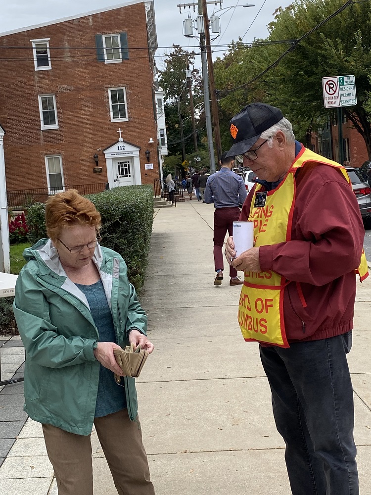 October 24, 2021, Collecting donations for our annual Tootsie Roll Drive for the Intellectually Disabled after Masses at St. John the Evangelist Catholic Church, Frederick, MD.