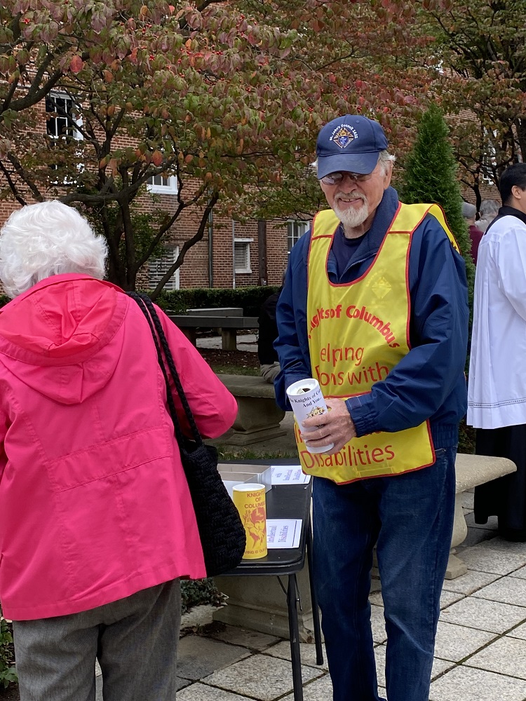 October 24, 2021, Collecting donations for our annual Tootsie Roll Drive for the Intellectually Disabled after Masses at St. John the Evangelist Catholic Church, Frederick, MD.