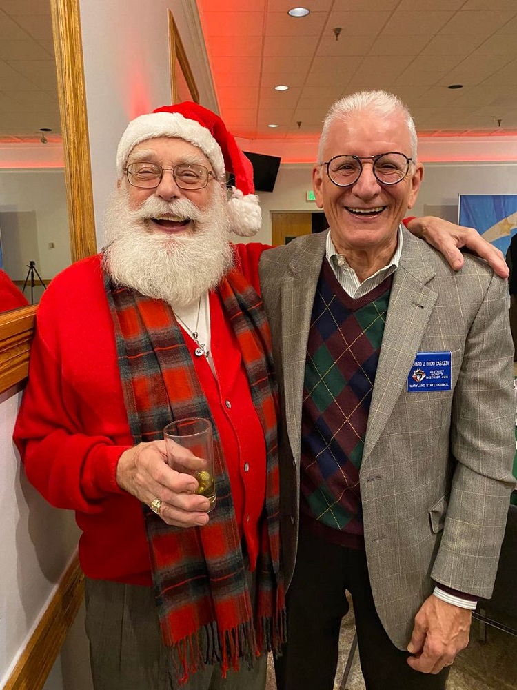 December 5, 2021, Maryland State Council Christmas party. Santa Claus tells PGK Rick Casazza (currently our MD District 25 Deputy) that he's on the nice list for this year.
