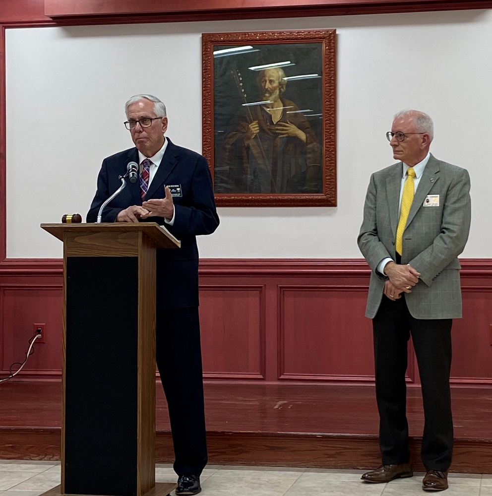 Br. Bob Boehman expresses his appreciation as Seton Chapter President Rick Casazza observes.