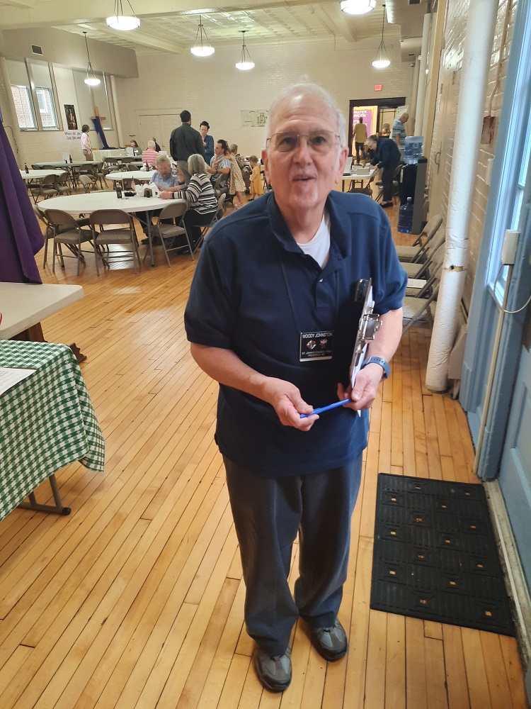 March 18, 2022. St. John's Council's Annual Lenten Friday Fish Dinners at the Sister Margaret Bauer Evangelization Center, 114 East Second Street, Frederick, MD. Br. Woody Johnston submits a to-go order in the dining room.
