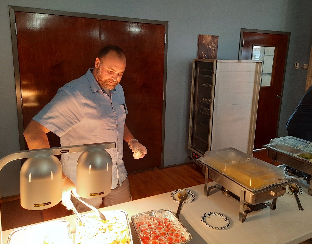 Friday, April 8, 2022. St. John's Council's Annual Lenten Friday Fish Dinners at the Sister Margaret Bauer Evangelization Center, 114 East Second Street, Frederick, MD. Serving team: Br. Joe Foehrkolb prepares a meal.