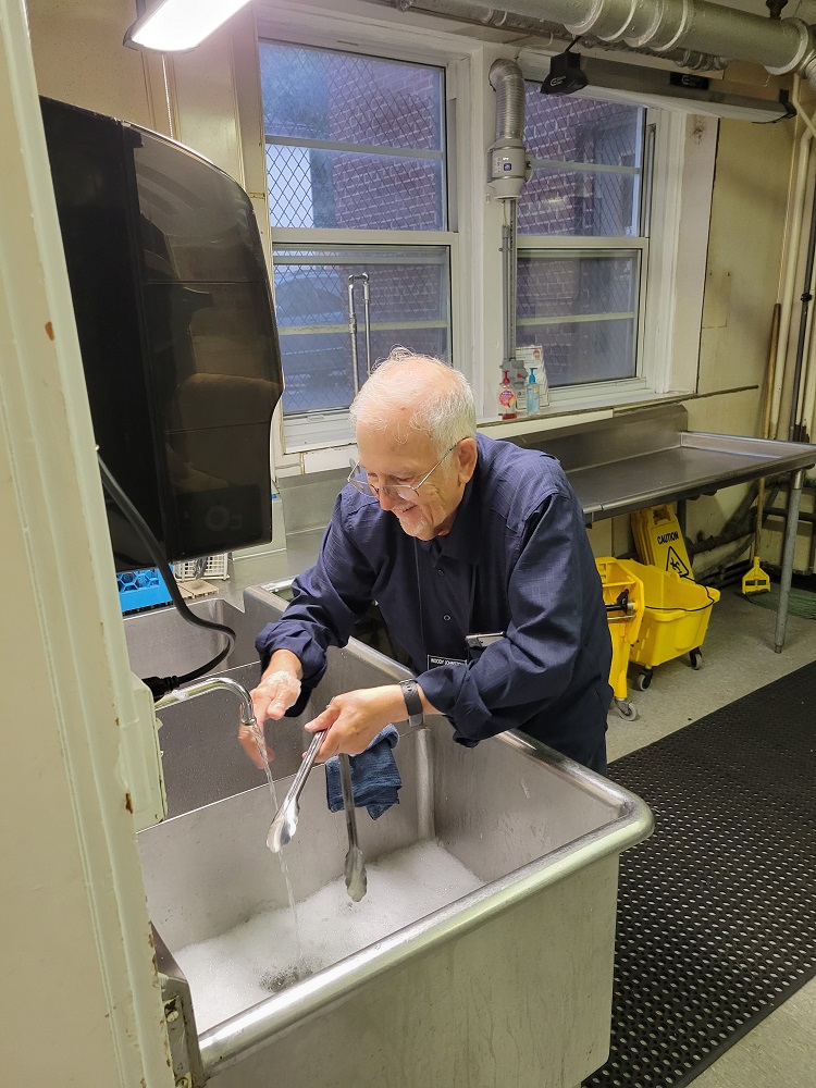 Br. Woody Johnston cleaning up in kitchen after the cook out.