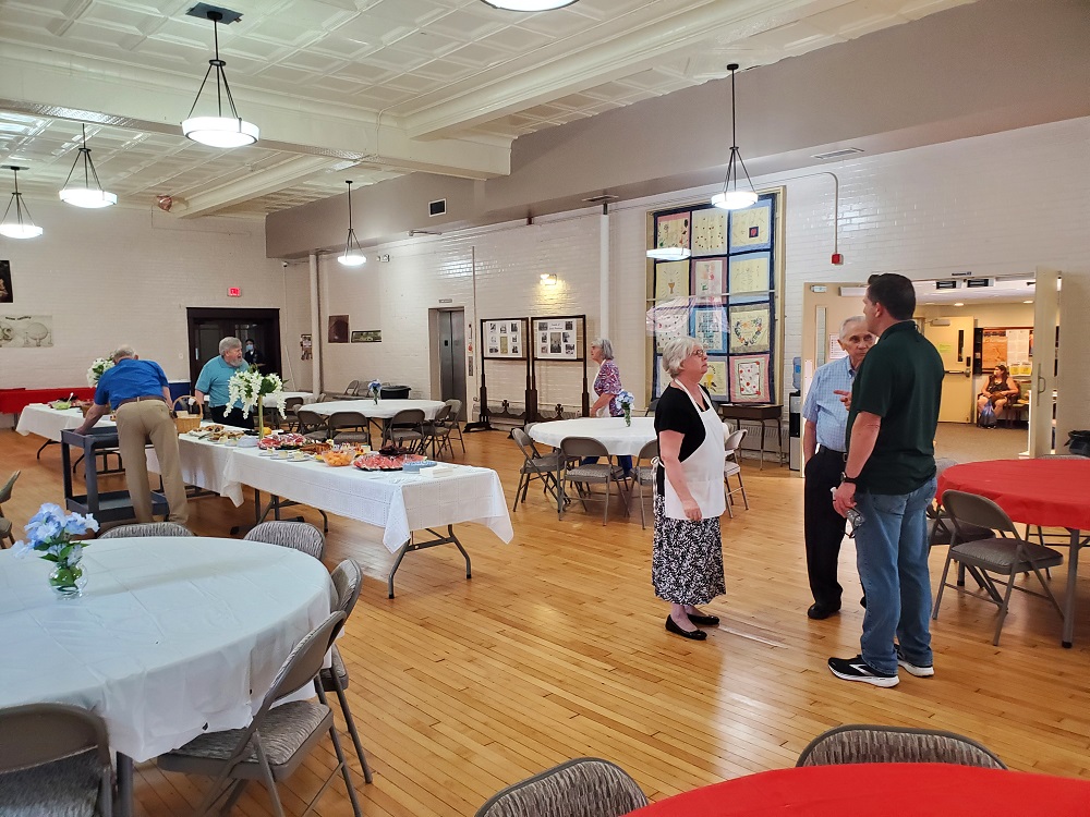 Sunday, June 12, 2022. Knights help the Martha's Ministry with set up in the hall for a farewell reception for Fr. John Streifel.