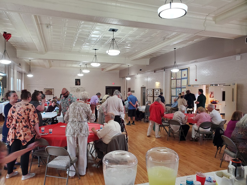 Sunday, June 12, 2022. Knights help the Martha's Ministry with set up in the hall for a farewell reception for Fr. John Streifel.
