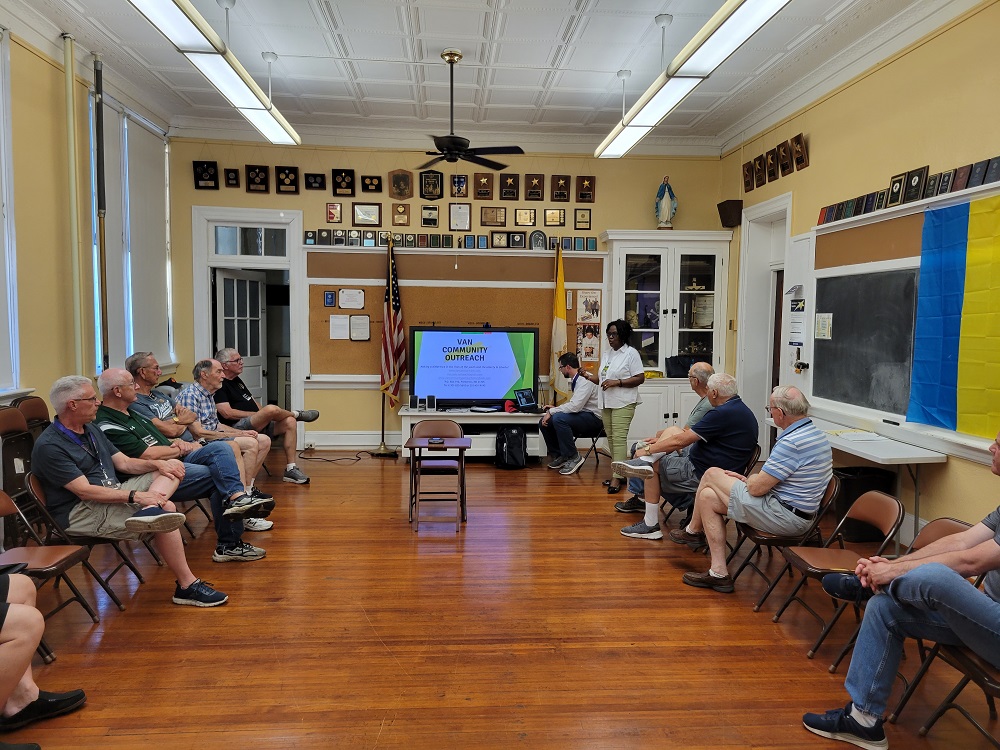 Tuesday, June 21, 2022. After council meeting in Room 10 of the Sister Margaret Bauer Evangelization Center, guest speaker Ms. Veronica Nimpson reported on the trip she took to Liberia and the difference VAN Community Outreach was able to make in the lives of children, youth, and elderly in Liberia. Our council had provided a $500 donation earlier this year.