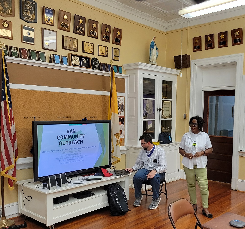 Tuesday, June 21, 2022. After council meeting in Room 10 of the Sister Margaret Bauer Evangelization Center, guest speaker Ms. Veronica Nimpson reported on the trip she took to Liberia and the difference VAN Community Outreach was able to make in the lives of children, youth, and elderly in Liberia. Our council had provided a $500 donation earlier this year.