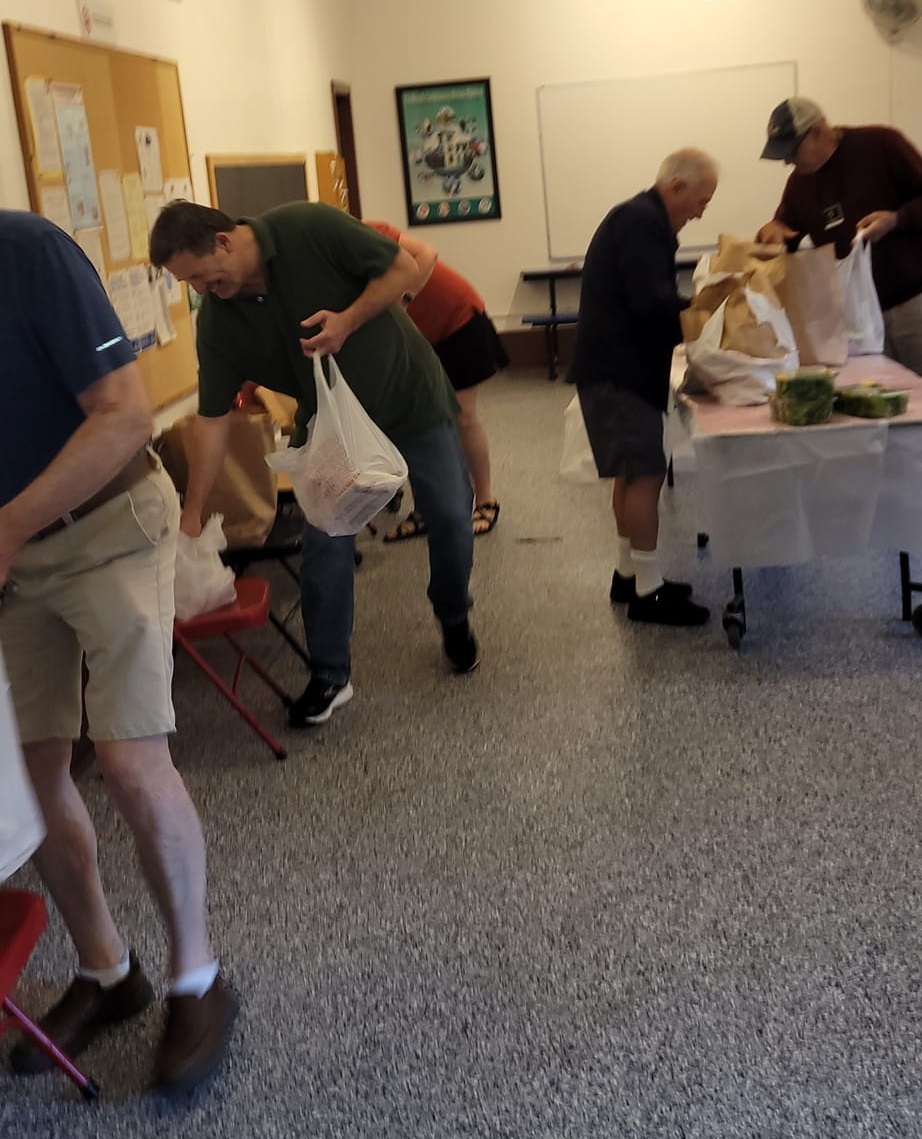 Saturday, June 25, 2022. Volunteers filling food bags at our monthly SHARE food co-op.