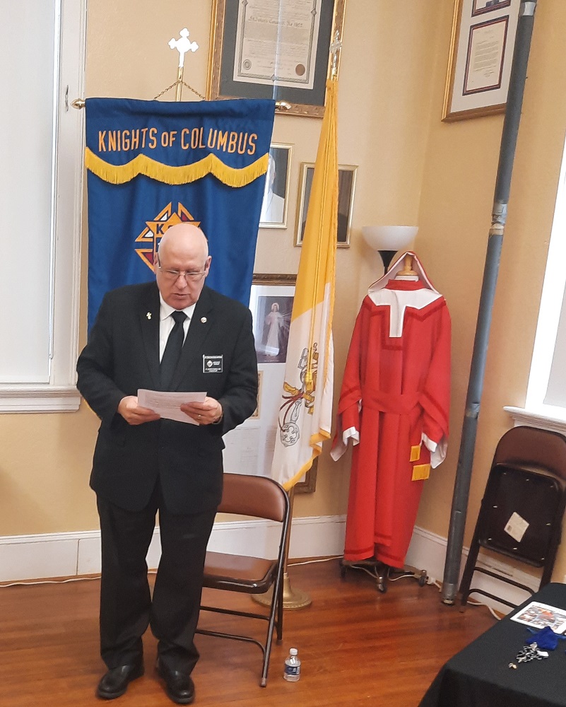 Sunday, August 21, 2022. St. John's Council 1622 conducts a Degree Exemplification in our council chamber in Room 10 of the Sr. Margaret Bauer Evangelization Center for three new members. Deacon Sir Knight Doug Nathan provides final benediction.