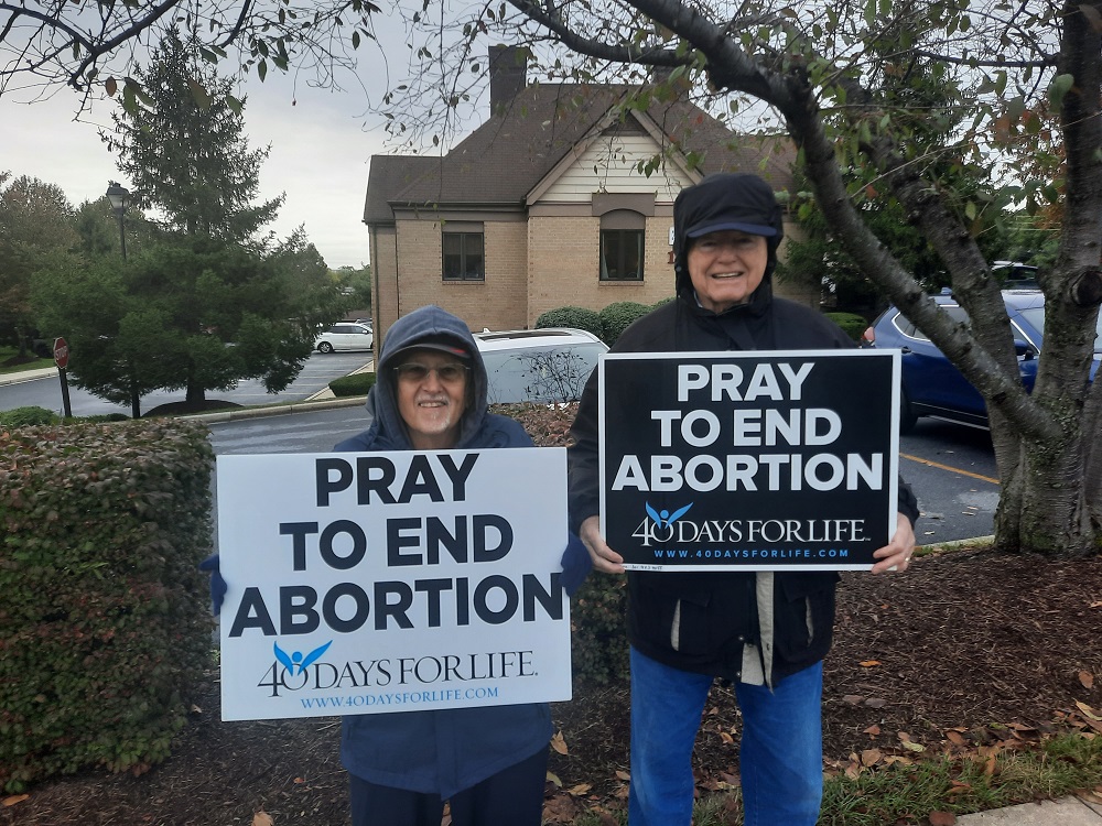 October 4, 2020 - Forty Days for Life vigil in front of Planned Parenthood office on Thomas Johnson Drive, Frederick, MD. (LtoR) Br. Woody Johnston and another prayer volunteer.