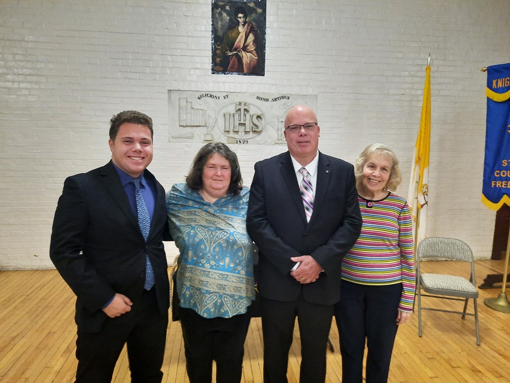 Sunday, October 23, 2020 - Degree Exemplification held in the hall of St. John the Evangelist Church, Frederick, MD. New third degree member William Sohm (2md fom right) stands with his family after the degree.