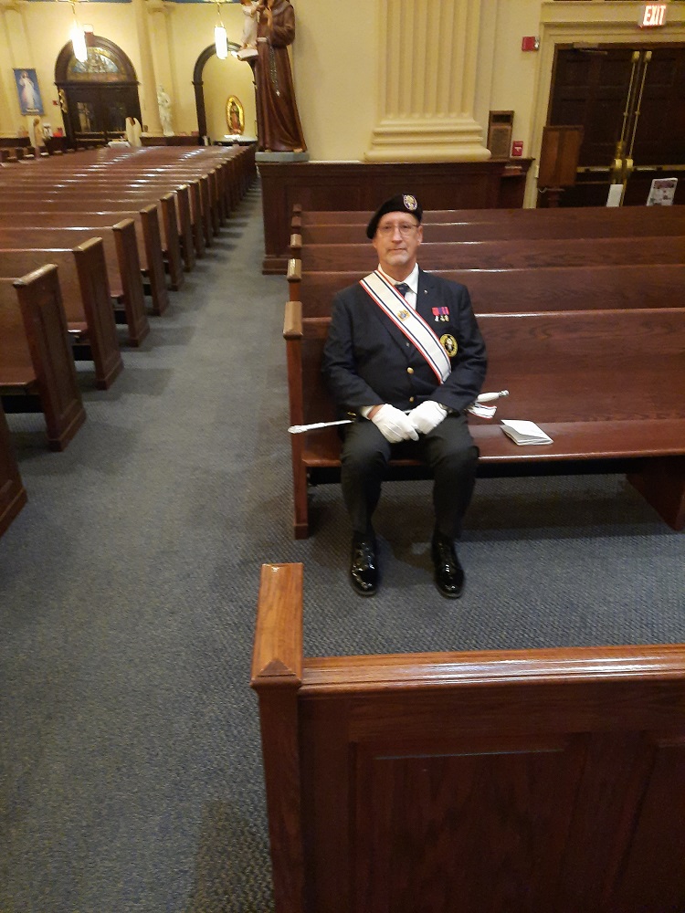 Bishop McNamara Assembly Past Faithful Navigator Walter Leskuski (Cncl 14011) serves as a color corps member.